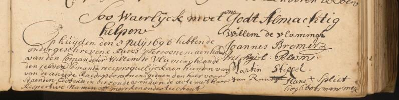 In incidents like this, a ship's council was composed out of the six most important men on board, with Willem de Vlamingh as president. They formed a kind of court. Because the midshipman had never given any trouble before in the past, he received a merciful judgment: the boy had to stand in front of the mast and received 3 blows from all officers. Afterwards he even had to say thanks for this "merciful" punishment! The judges the judges hinted they were passing this verdict in order to keep the peace on board. Willem was one of the men who signed the statement. Looking at his unsteady signature we can deduce he preferred to hold a tiller rather than a pen!